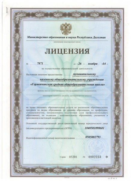 Лицензия (выписка из реестра)