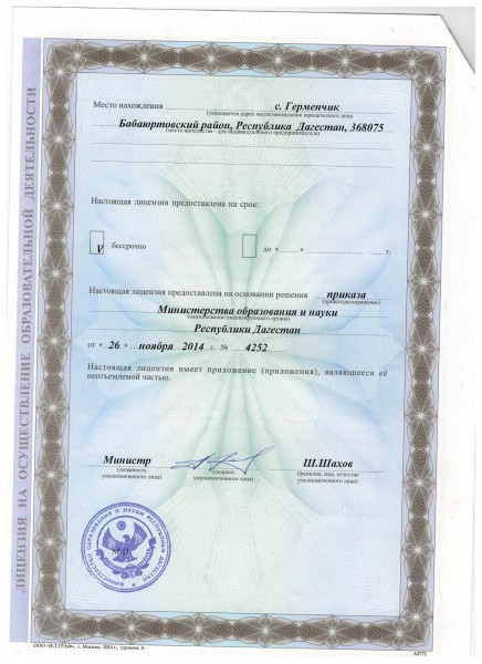 Адрес местонахождения образовательной организации* 368075, Республика Дагестан, Бабаюртовский район, с.Герменчик, ул. Исмаилова, д. 49.